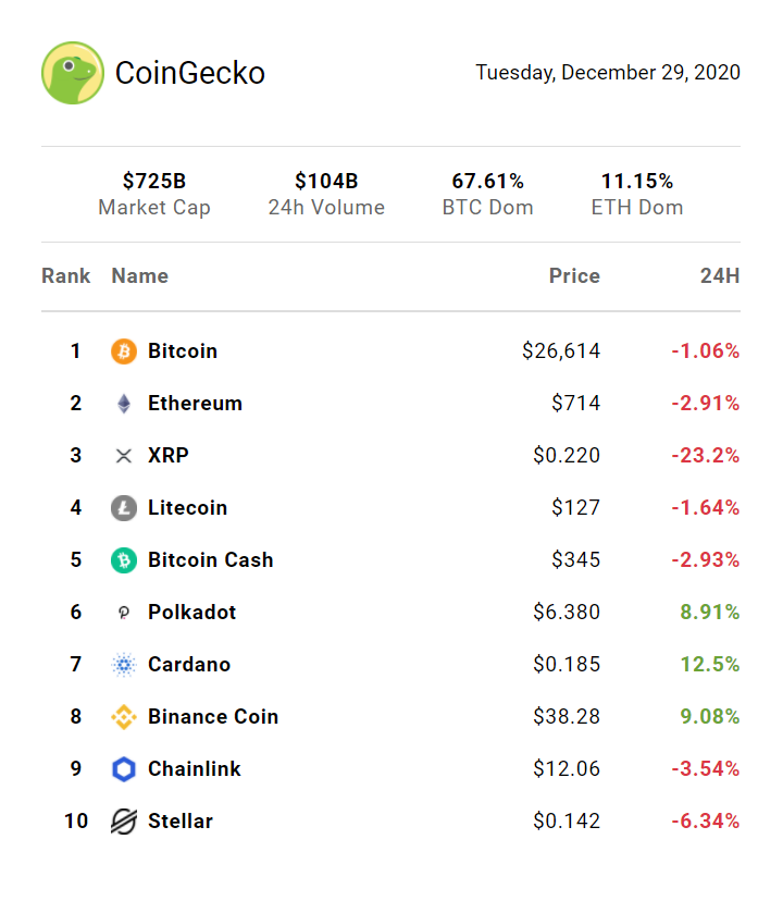 Happy Tuesday, Geckos! Just a few days before 2020 ends, the DeFi insurance project Cover (COVER) protocol became a victim of a $3 million hack. Its token price fell by 80% and Grap Finance (GRAP), another DeFi protocol took responsibility for the exploit. The hacker used an "infinite mint" bug to claim several millions of dollars worth of ETH and then dumped the additional supply on exchanges. In today's news, Binance introduced a new options contract, a crypto lending platform wants to become a bank, and BlackRock is hiring for blockchain expertise. Read on! | | |