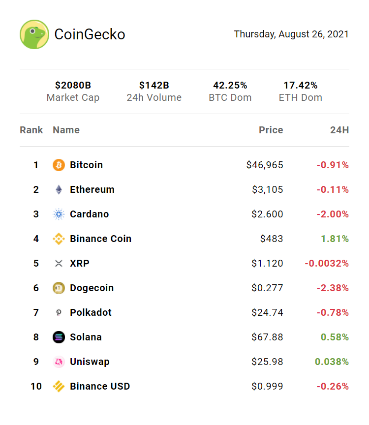 | | | Follow us on social media & share our newsletter and be rewarded with some CoinGecko goodies! |