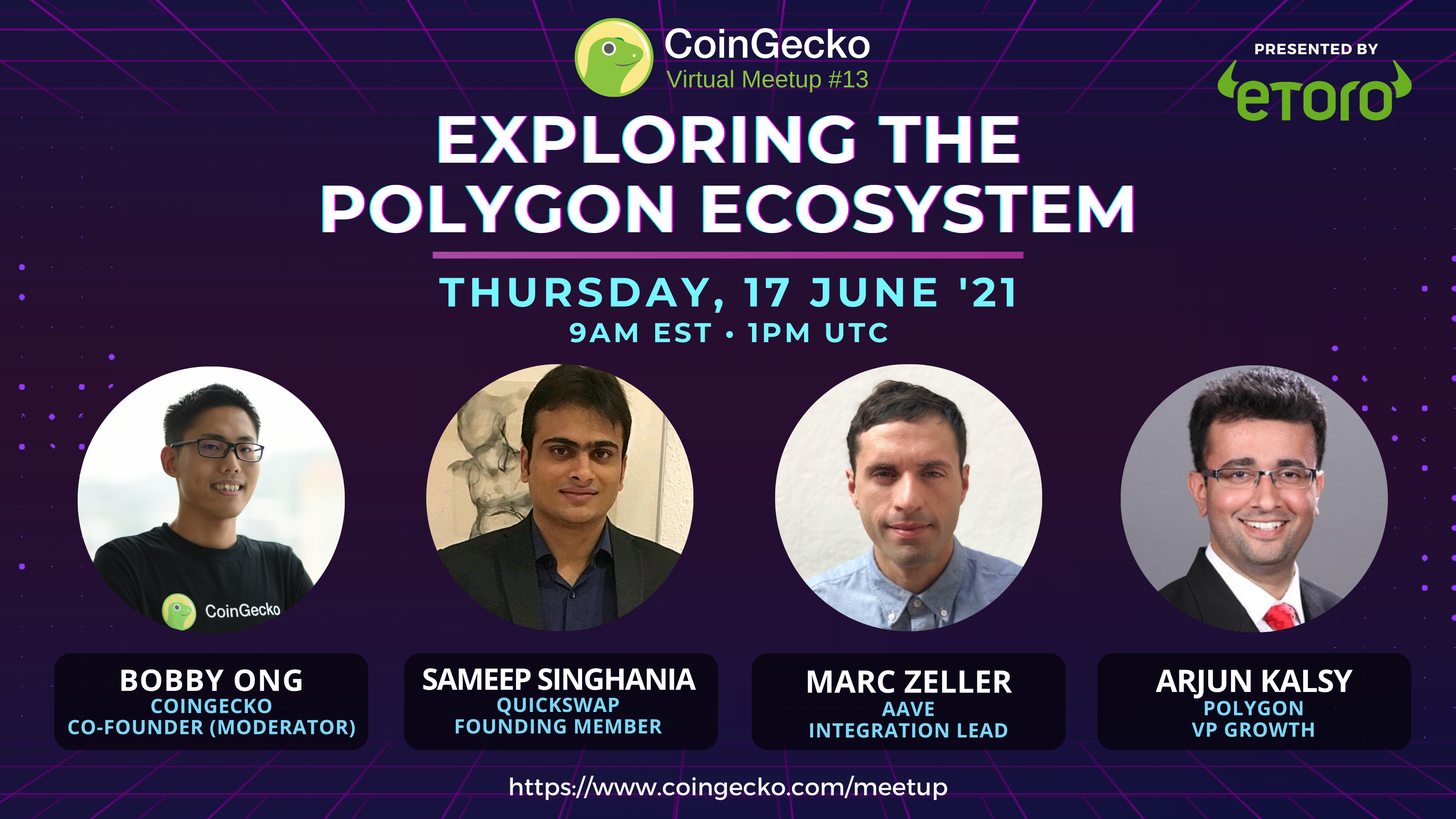 The Polygon ecosystem is a protocol and framework for building and connecting Ethereum-compatible blockchain networks. Its growing popularity makes it clear that there is a need for cheap and ultra-fast transactions. Join us as we take a deep dive into the Polygon ecosystem with Arjun Kalsy (VP Growth at Polygon), Marc Zeller (Integration Lead at Aave), and Sameep Singhania (Founding member of QuickSwap).